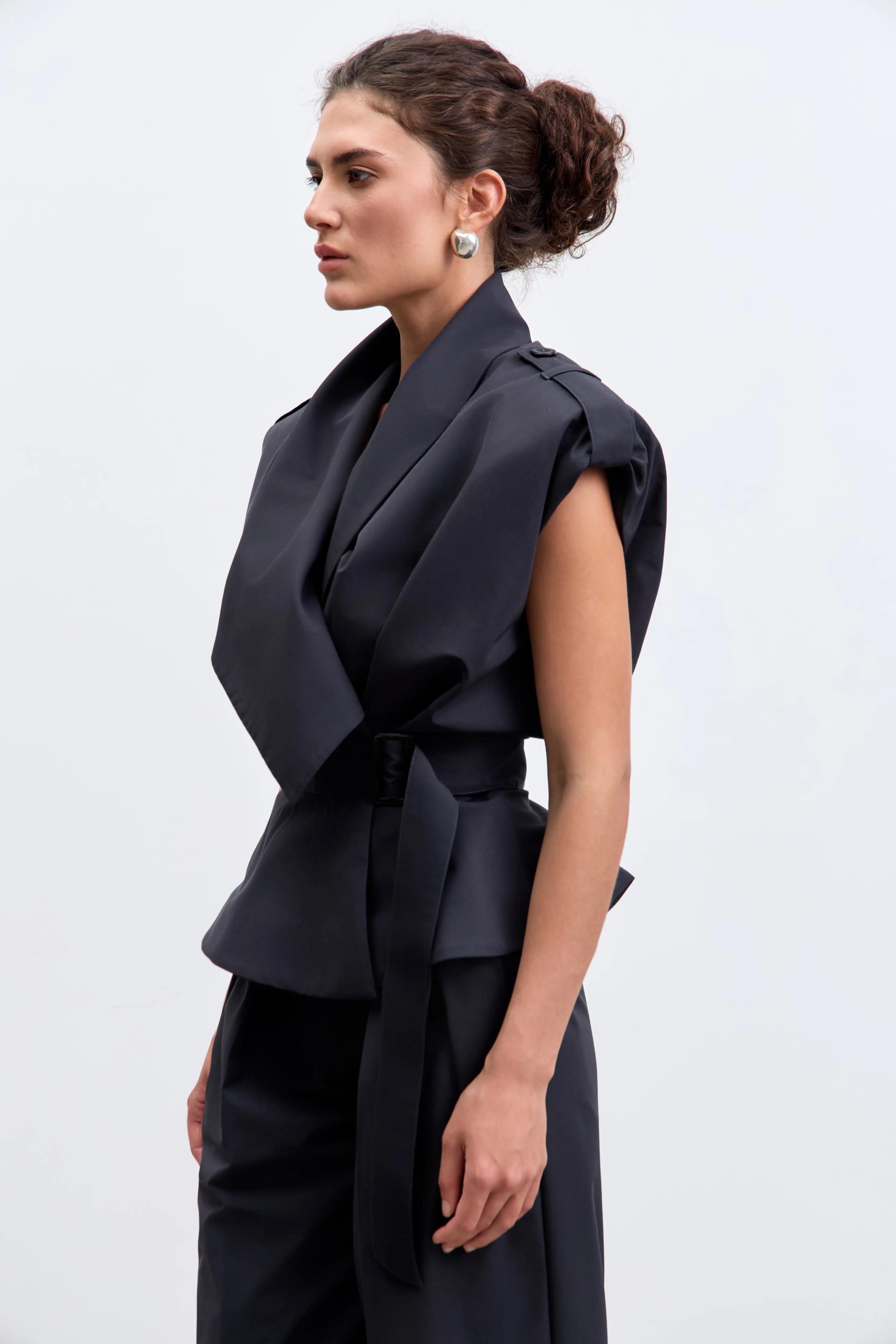 Жилет-бестселлер Phatemm с объёмными плечами — в безупречном чёрном цвете