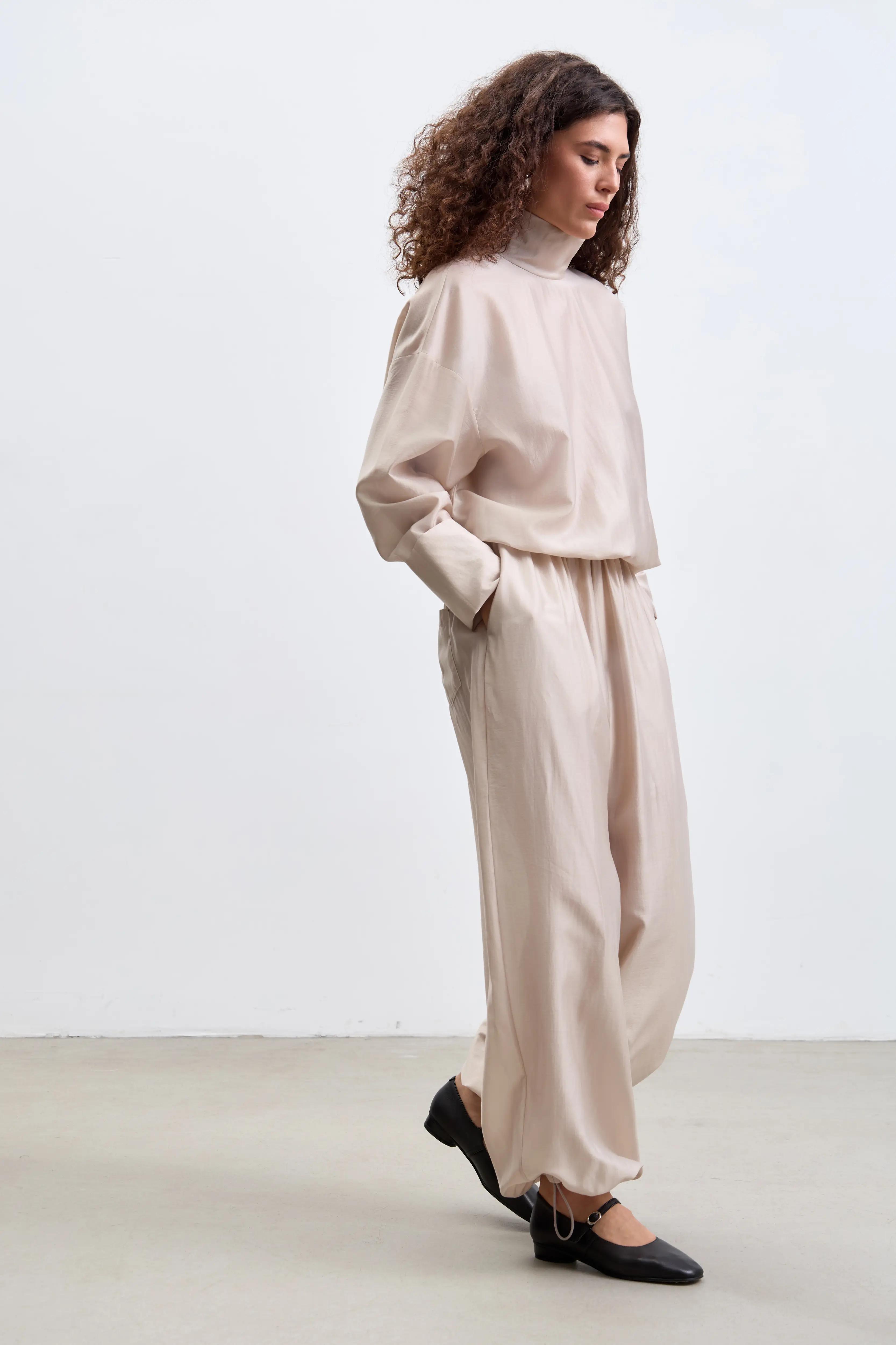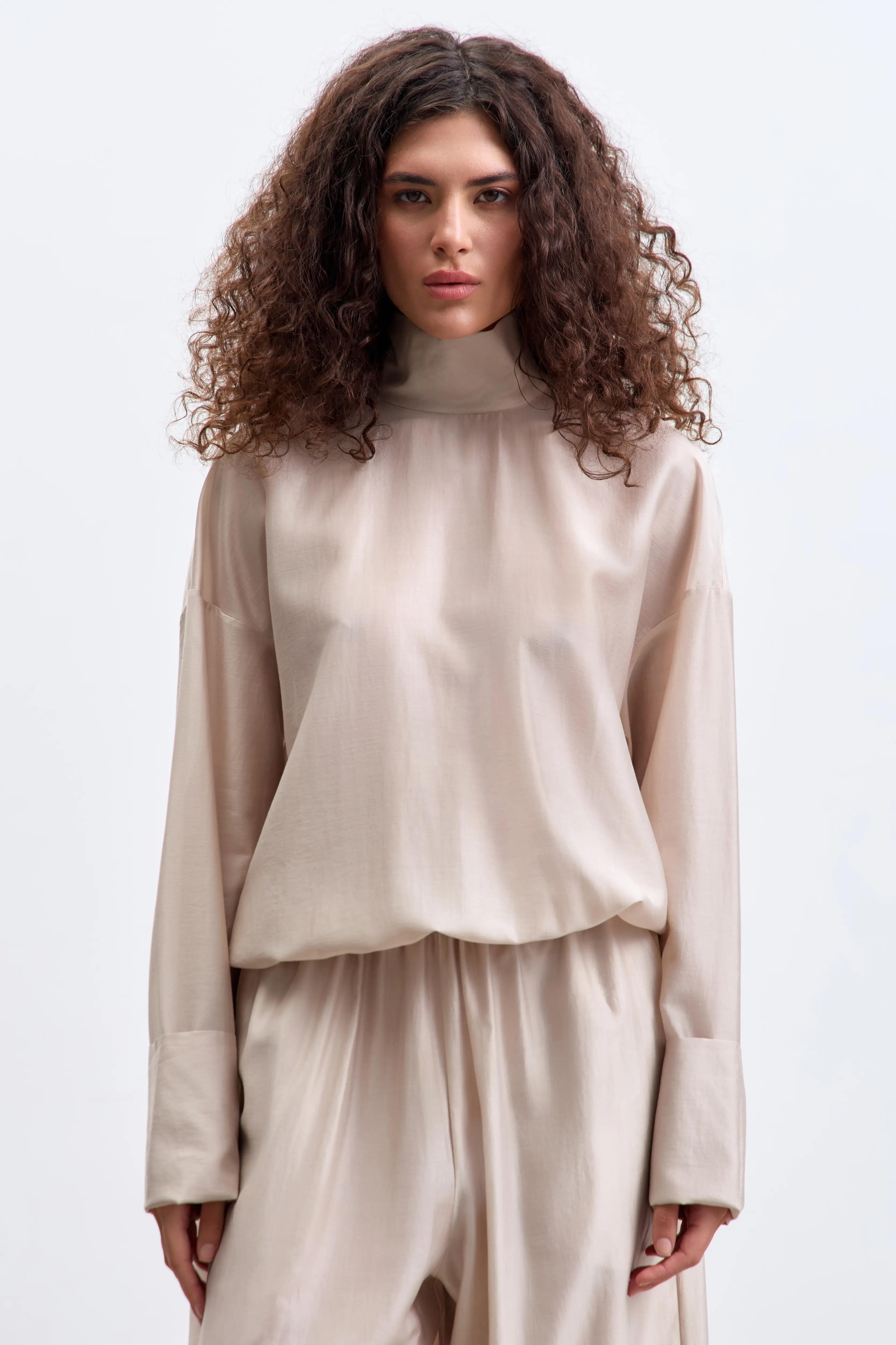 Блузка Rosy из 100 % тенсела: гладкая текстура с мягким сатиновым отблеском, дышит и приятно охлаждает кожу.