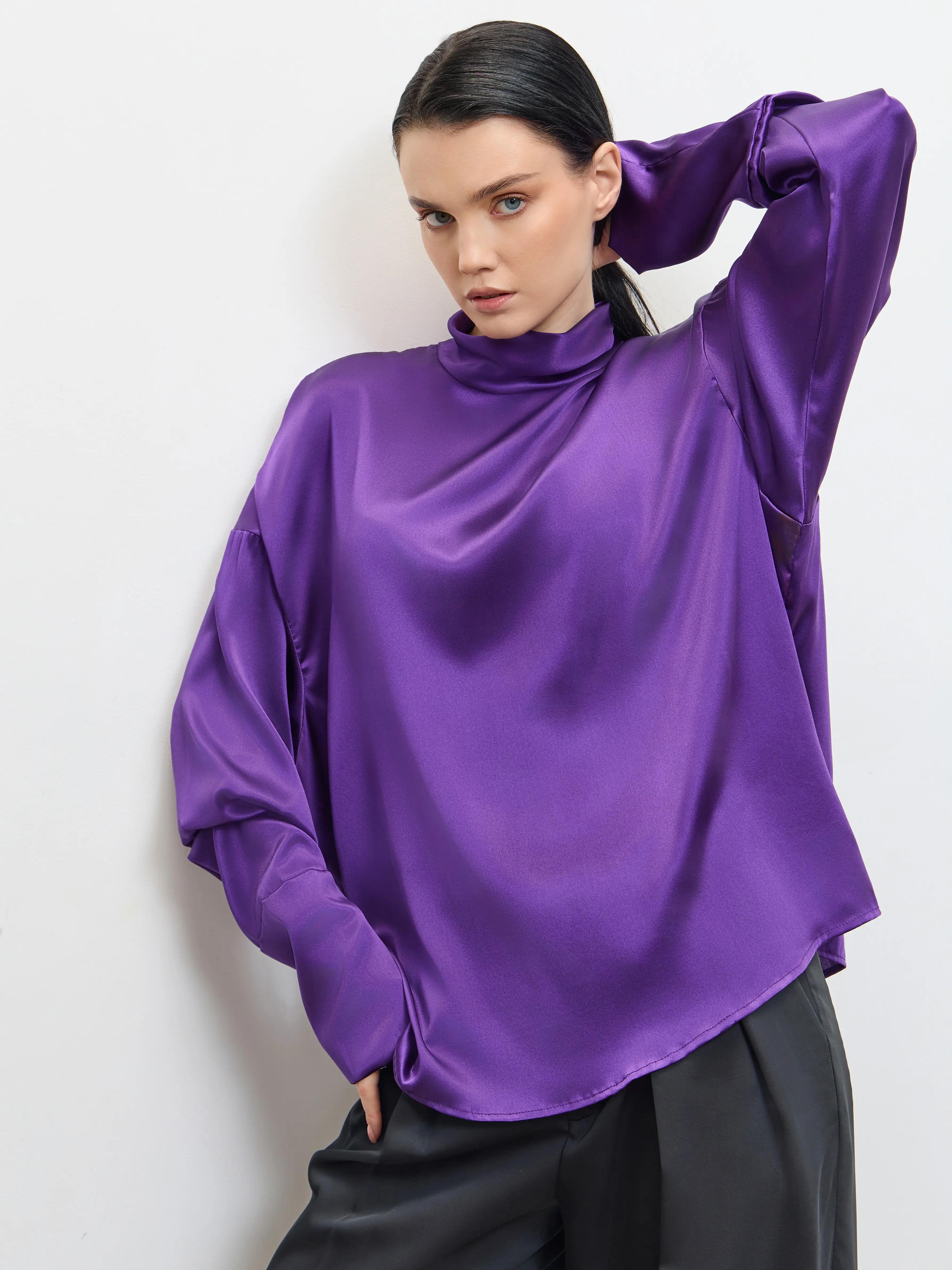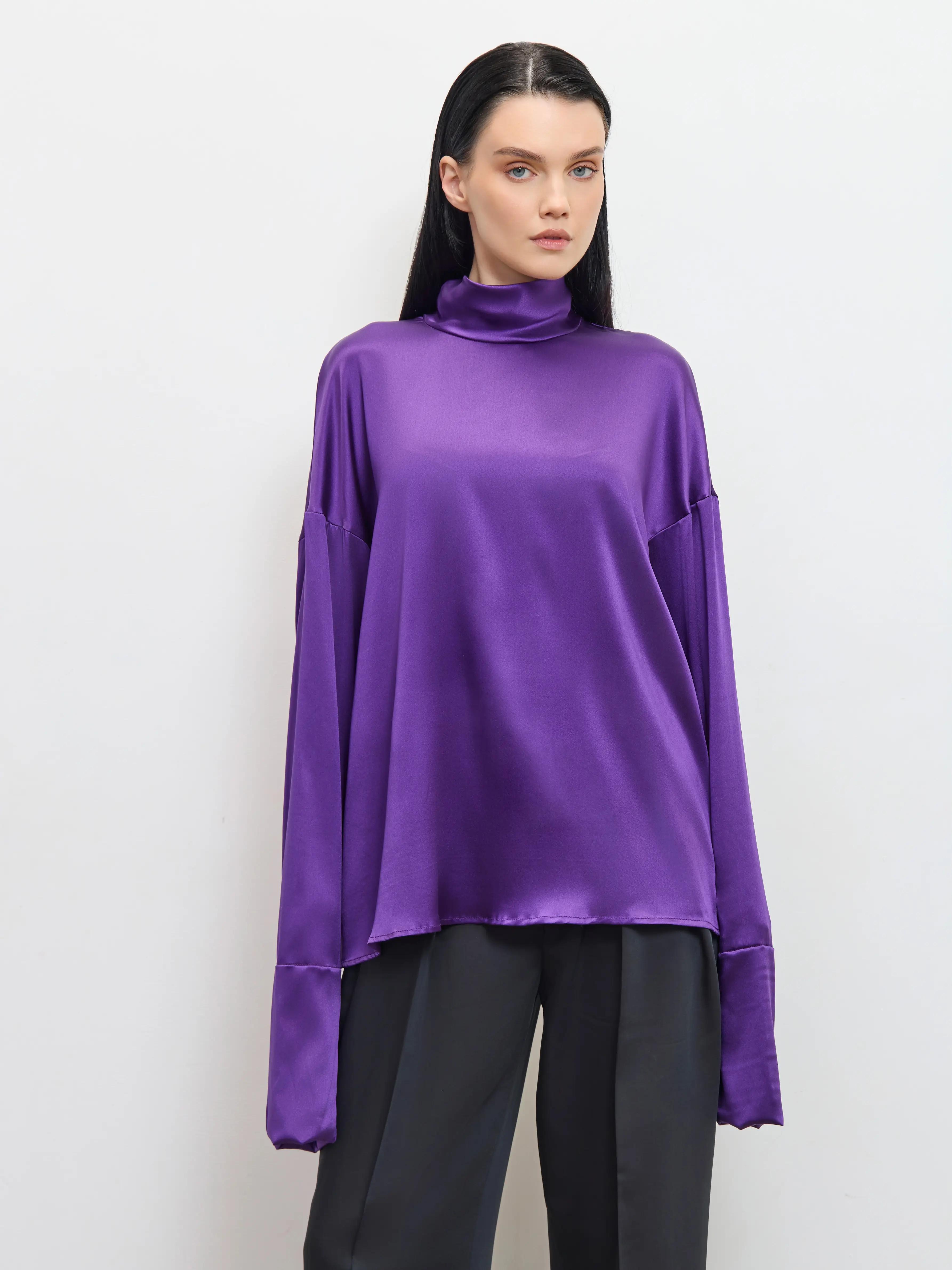 Блуза свободного кроя с длинным рукавом, выполнена из итальянского шелка.