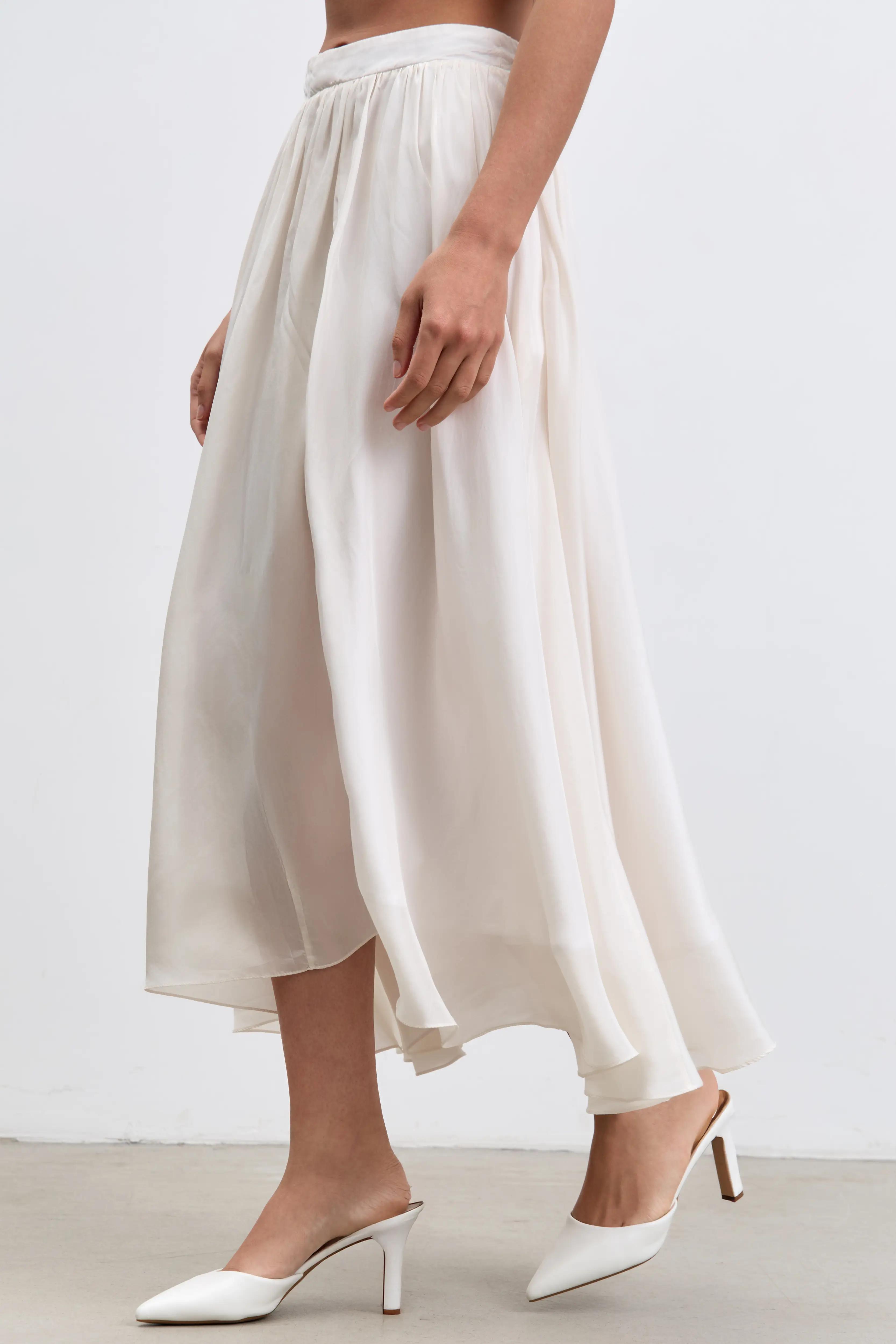 Лёгкий high-low по краю подчёркивает движение ткани.