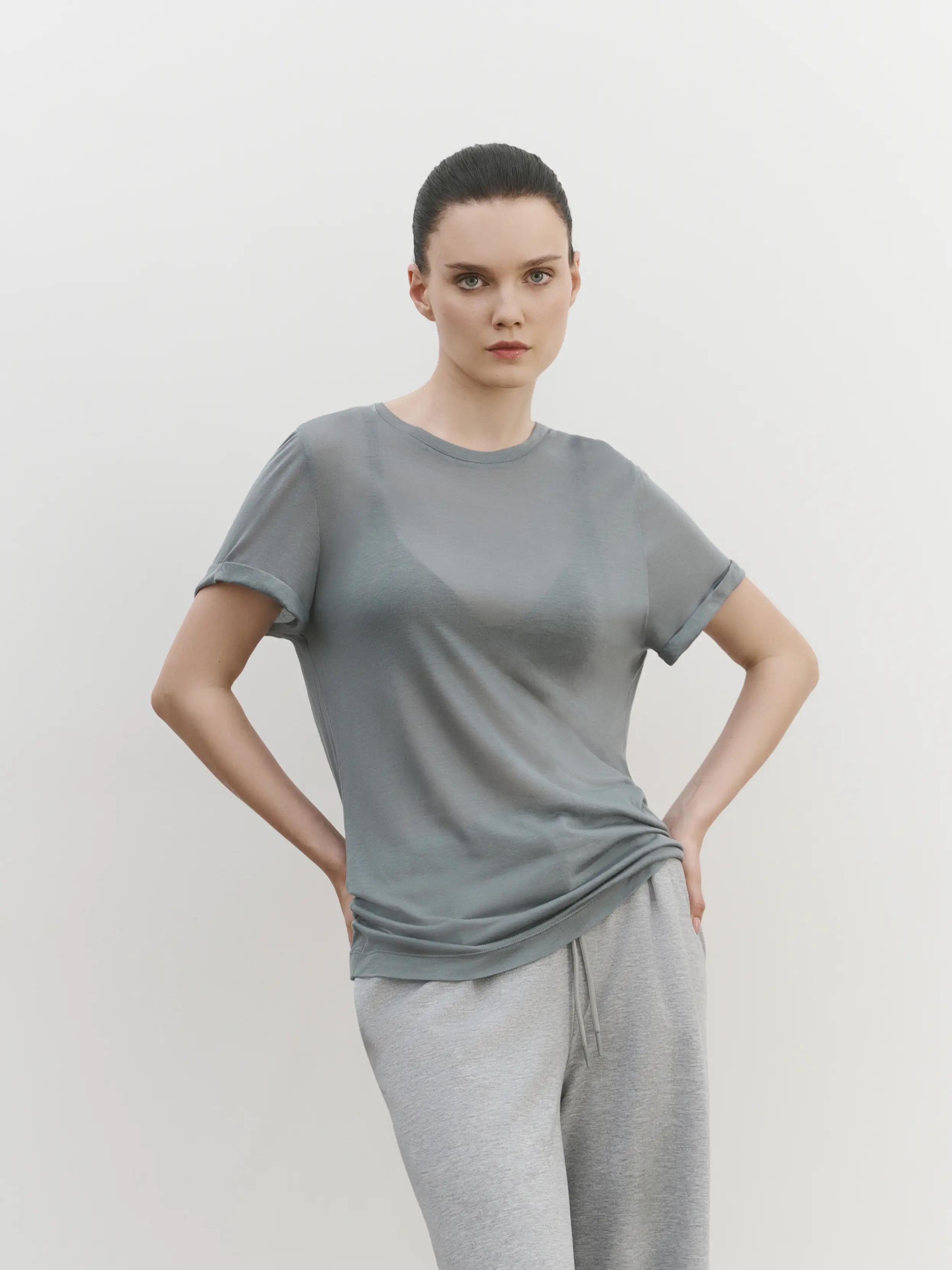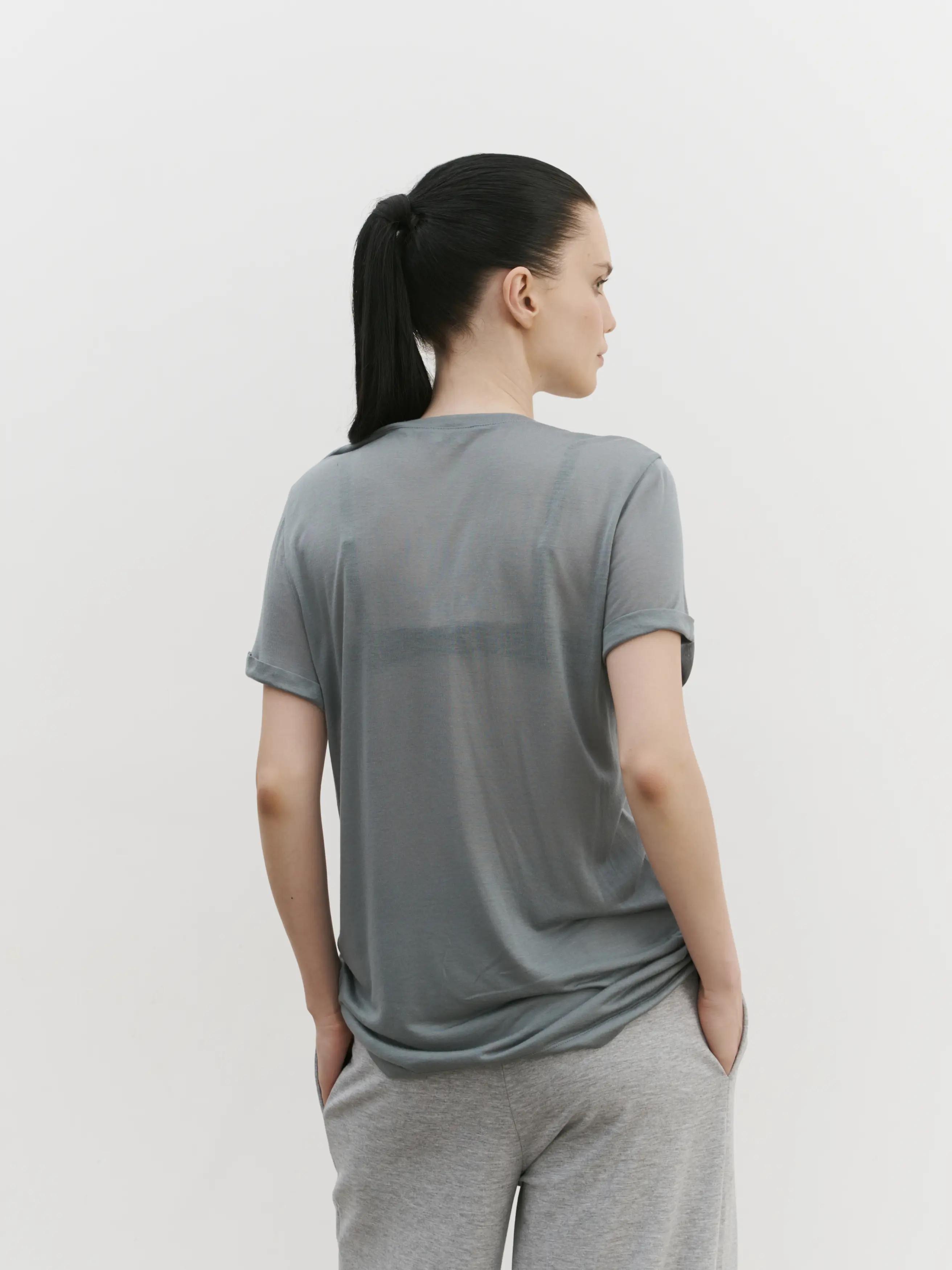 Легкая базовая футболка из мягкой, струящейся вискозы, в красивом графитовом оттенке.